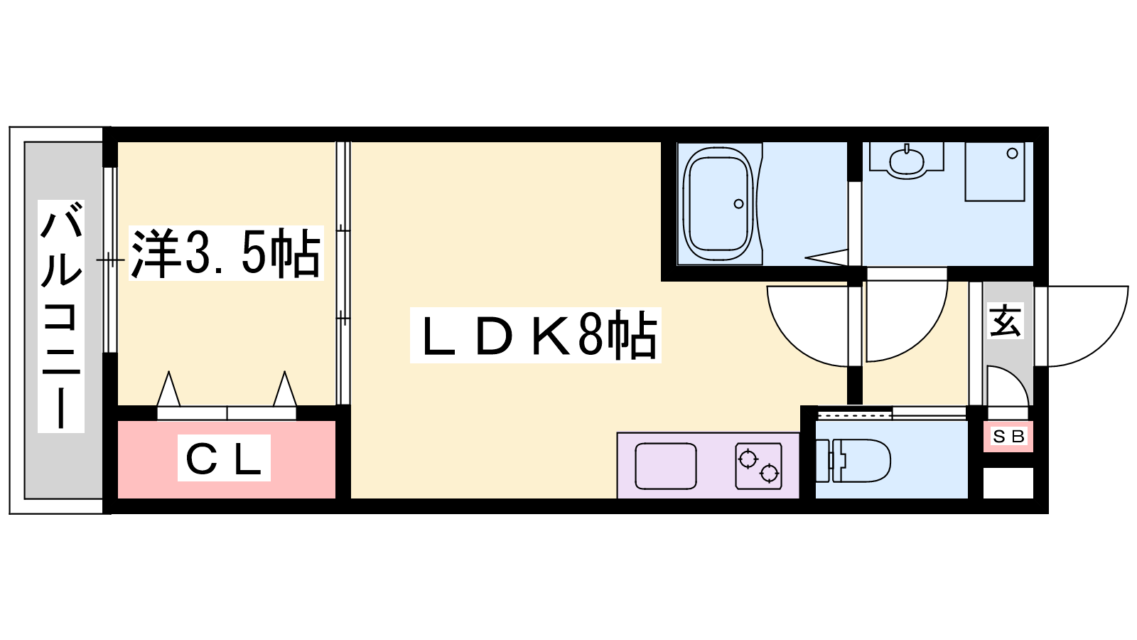 - LDK8帖、洋室3.5帖