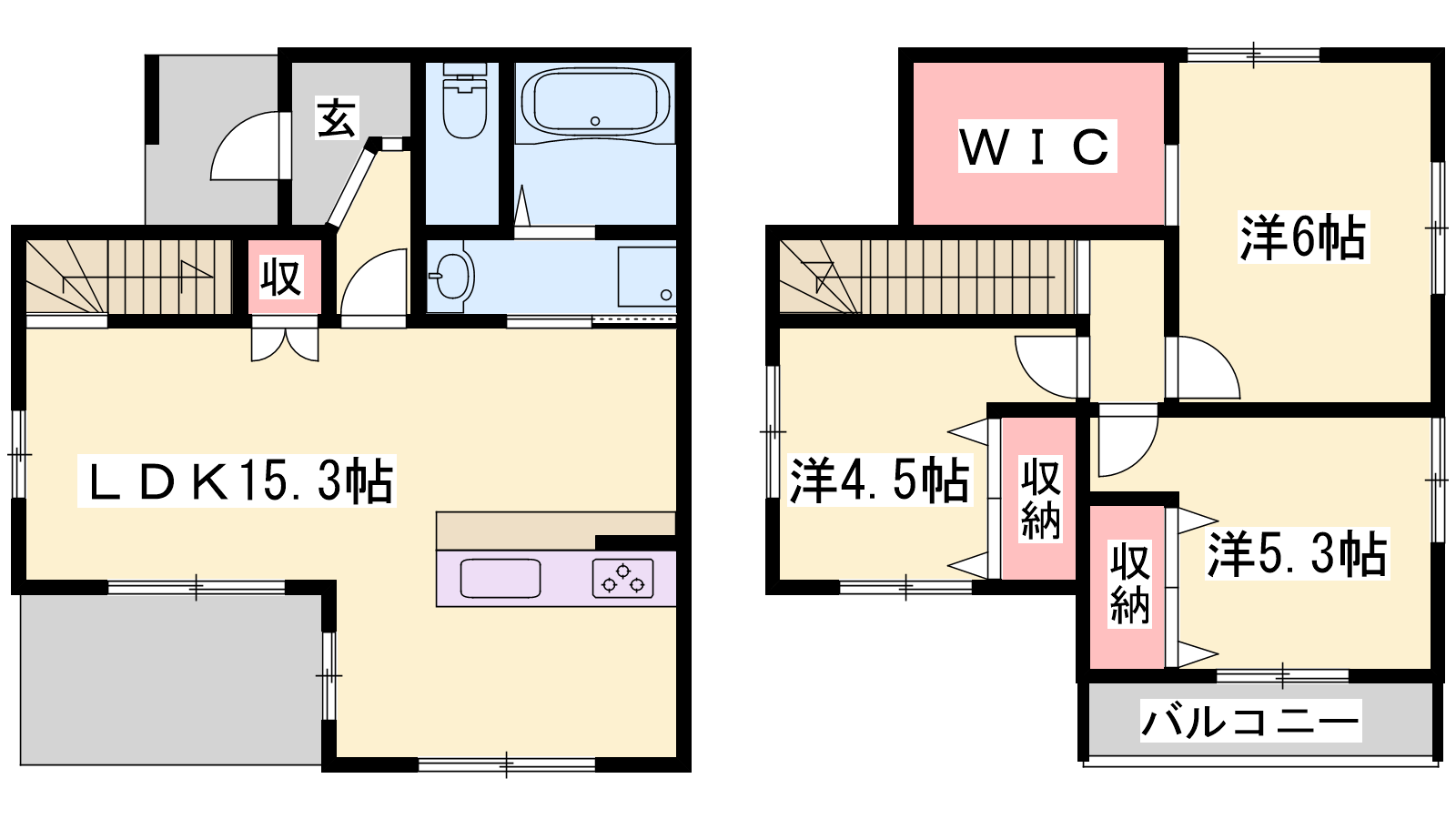- LDK15.3帖、洋室6帖、洋室5.3帖、洋室4.5帖