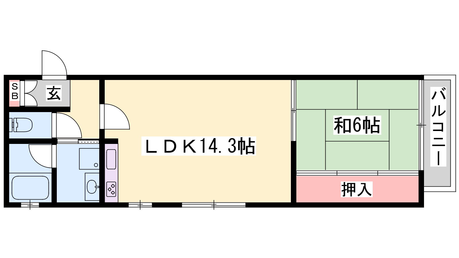 - 洋室14.3帖、和室6帖