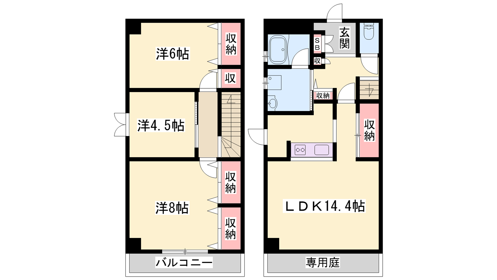 - LDK14.4帖、洋室8帖、洋室6帖、洋室4.5帖