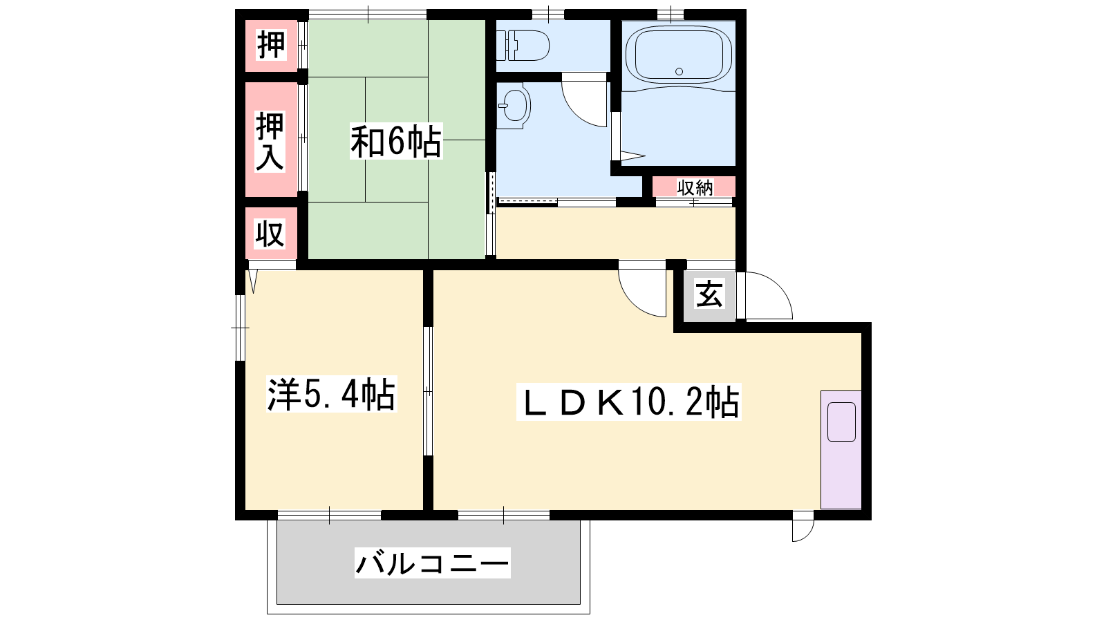 - LDK10.2帖、洋室5.4帖、和室6帖