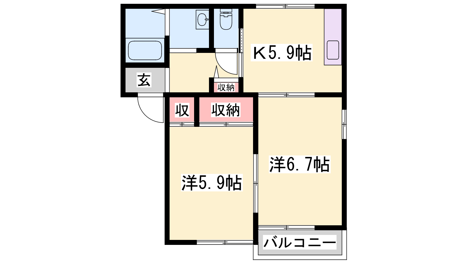 - K5.9帖、洋室6.7帖、洋室5.9帖