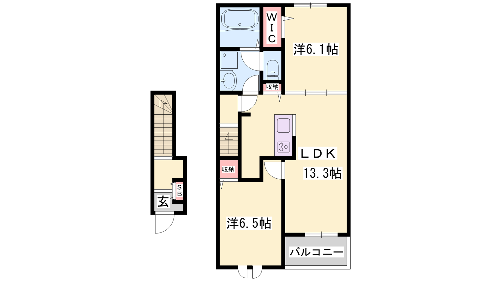 - LDK13.3帖、洋室6.5帖、洋室6.1帖