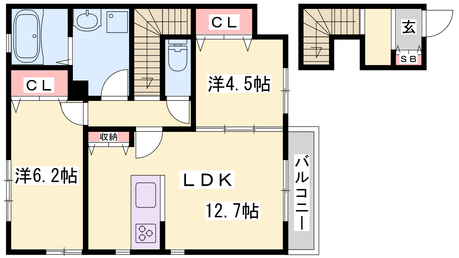 - LDK12.7帖、洋室6.2帖、洋室4.5帖