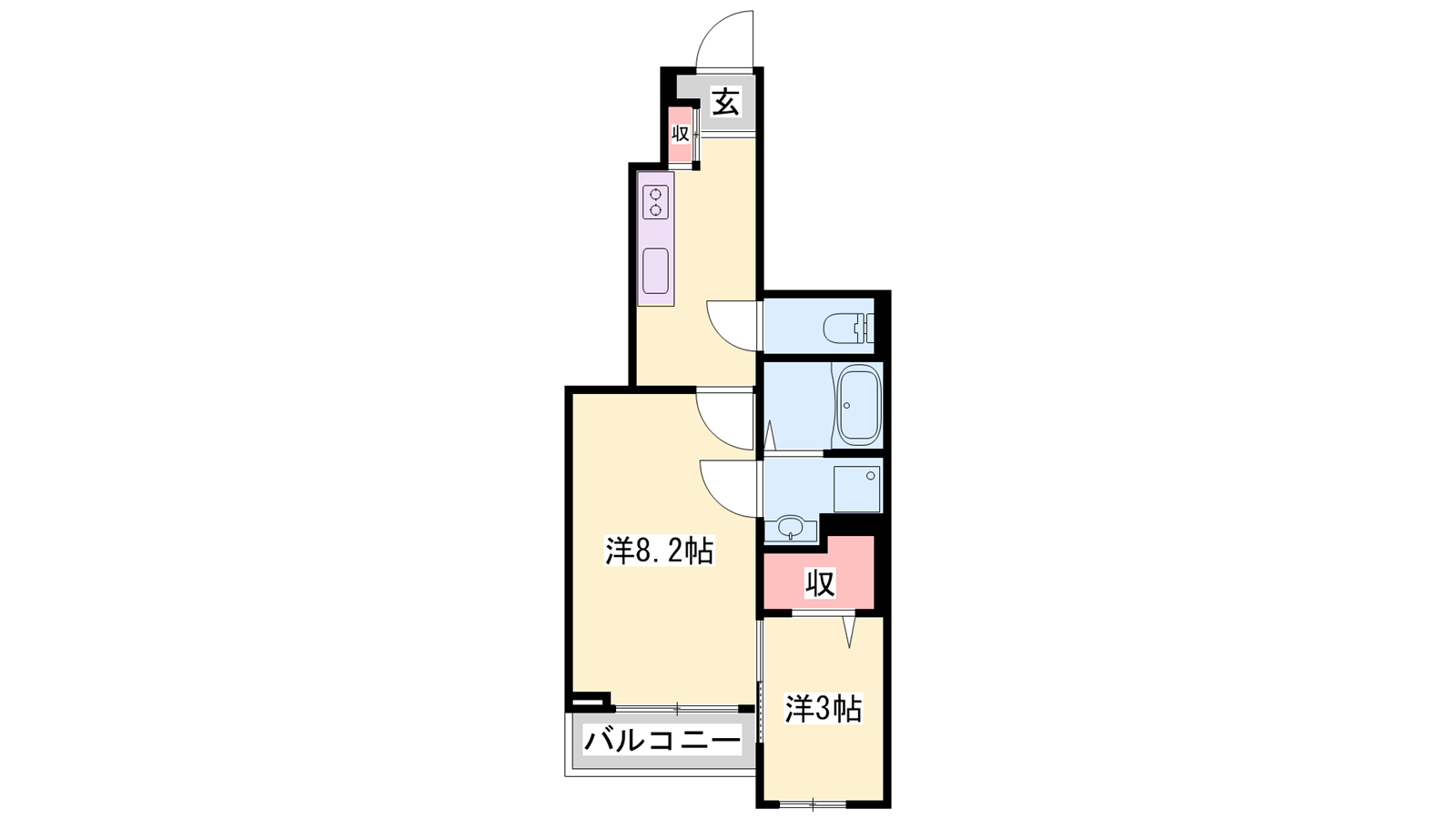 - K3.3帖、洋室8.2帖、洋室3帖