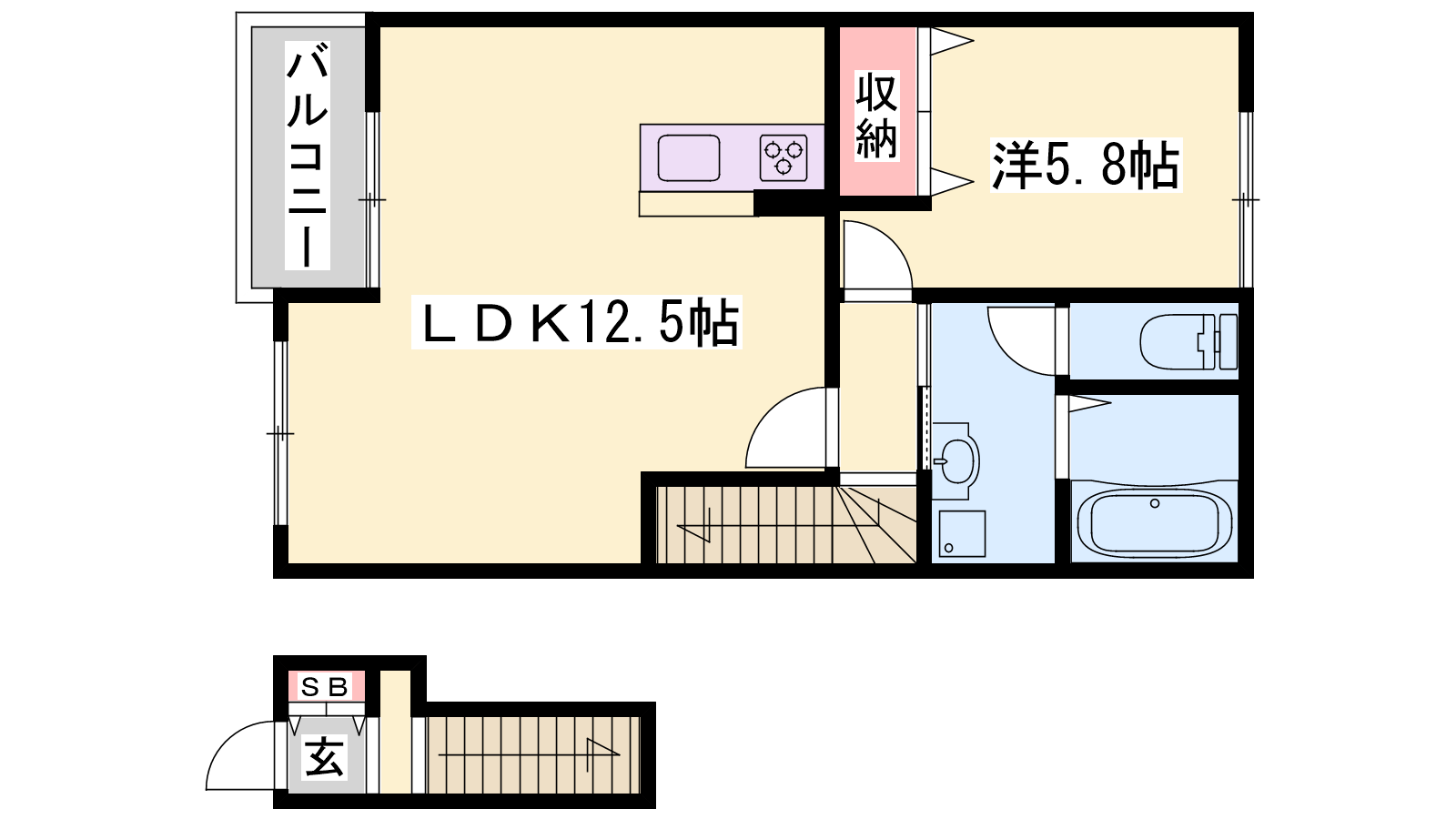 - LDK12.5帖、洋室5.8帖