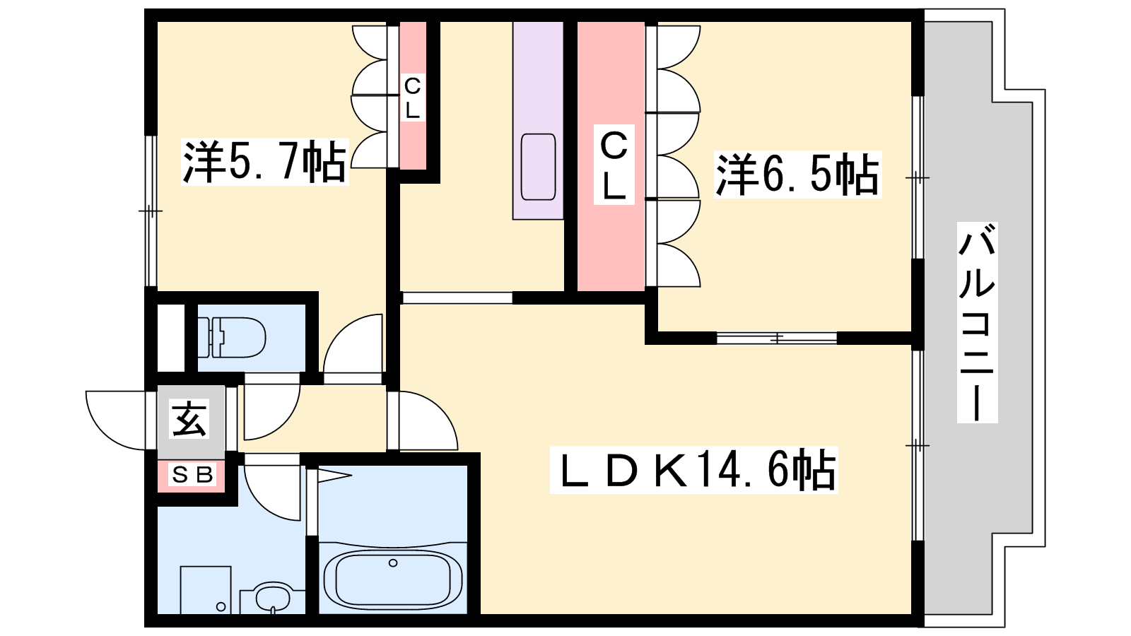 - LDK14.6帖、洋室6.5帖、洋室5.7帖