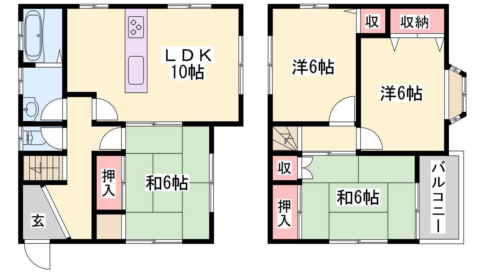 - LDK10帖、洋室6帖、洋室6帖、和室6帖、和室6帖