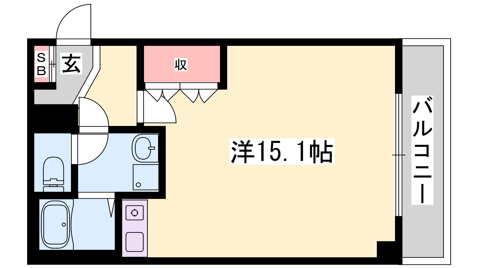 姫路駅まで徒歩11分!!都市ガス・オートロック付きマンション。広々15帖です。
