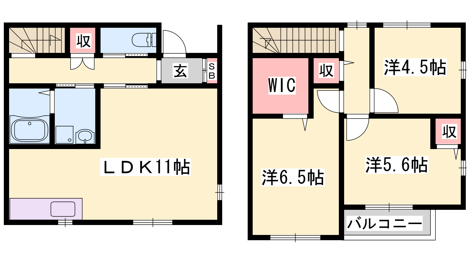 - LDK11帖、洋室6.5帖、洋室5.6帖、洋室4.5帖
