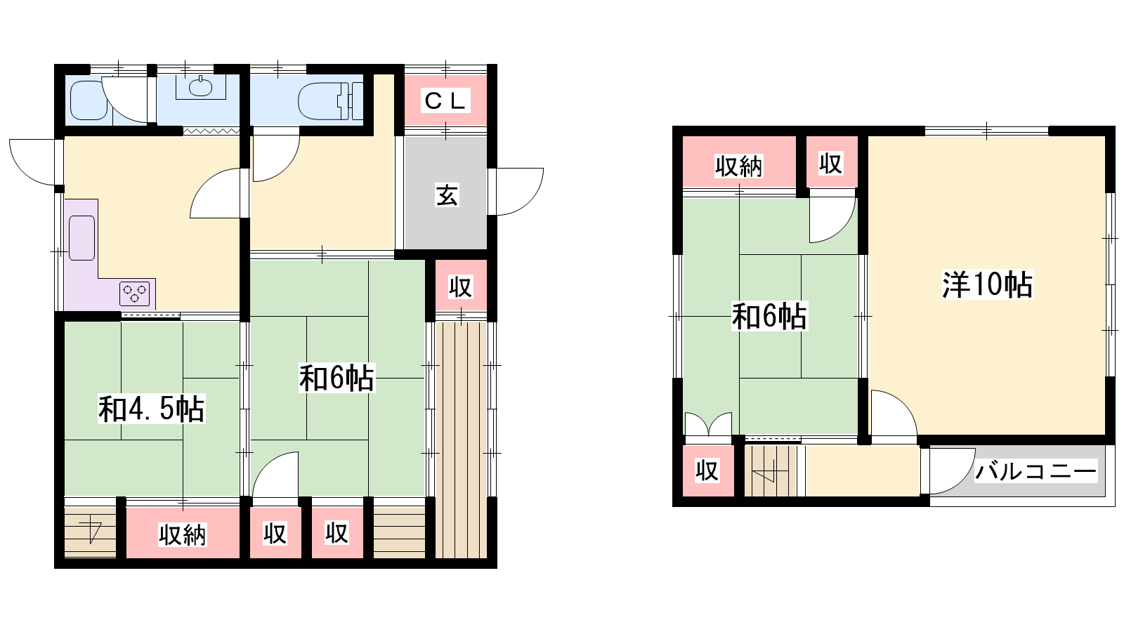 - DK4.5帖、洋室10帖、和室4.5帖、和室6帖、和室6帖
