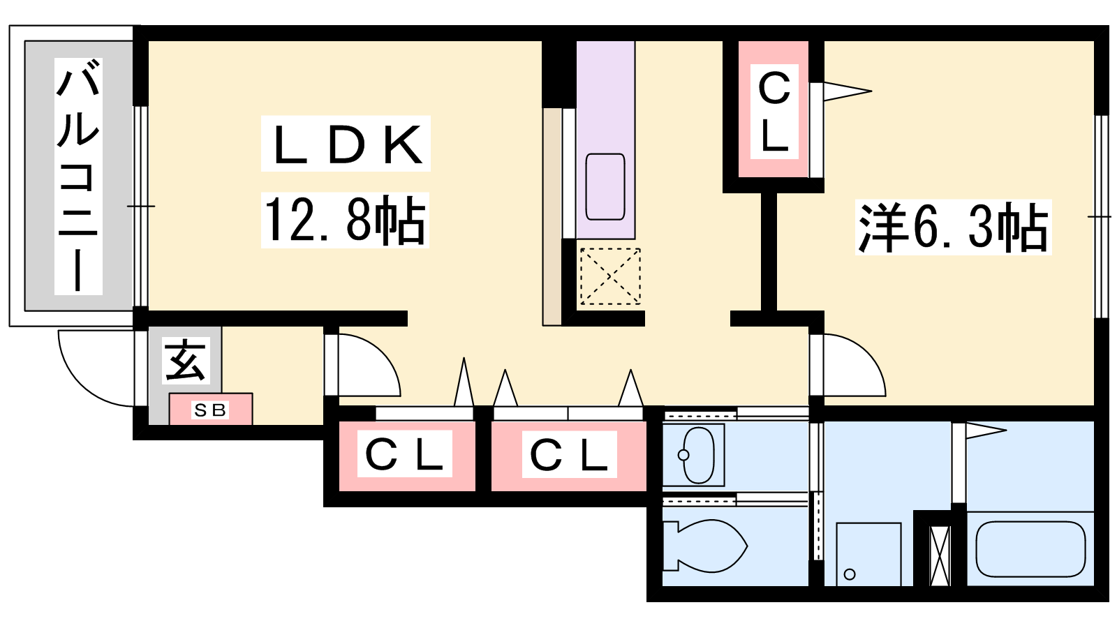 - LDK12.8帖、洋室6.3帖