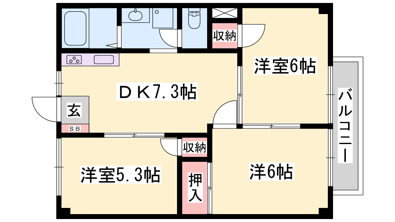 - DK7.3帖、洋室6帖、洋室5.3帖、洋室6帖