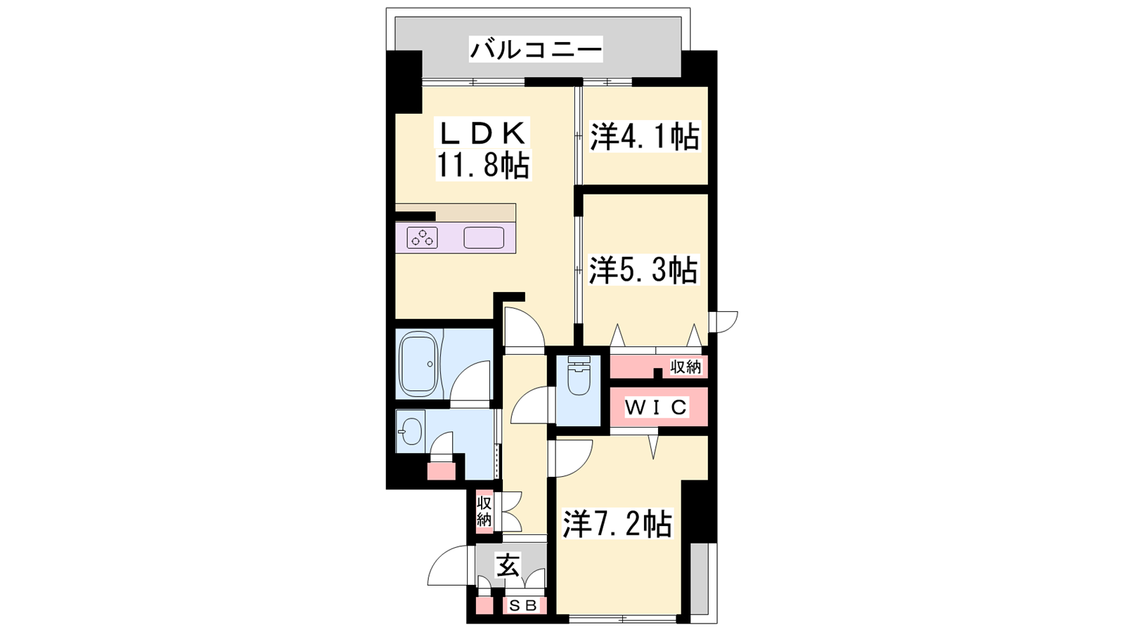 - LDK11.8帖、洋室7.2帖、洋室5.3帖、洋室4.1帖