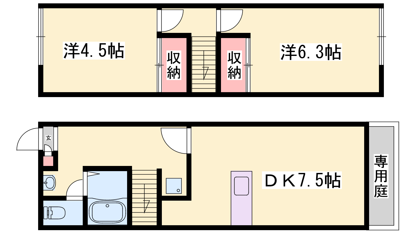 - LDK7.5帖、洋室6.3帖、洋室4.5帖