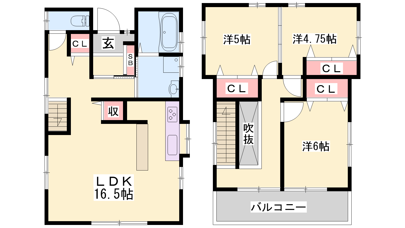 - LDK16.5帖、洋室6帖、洋室5帖、洋室4.75帖