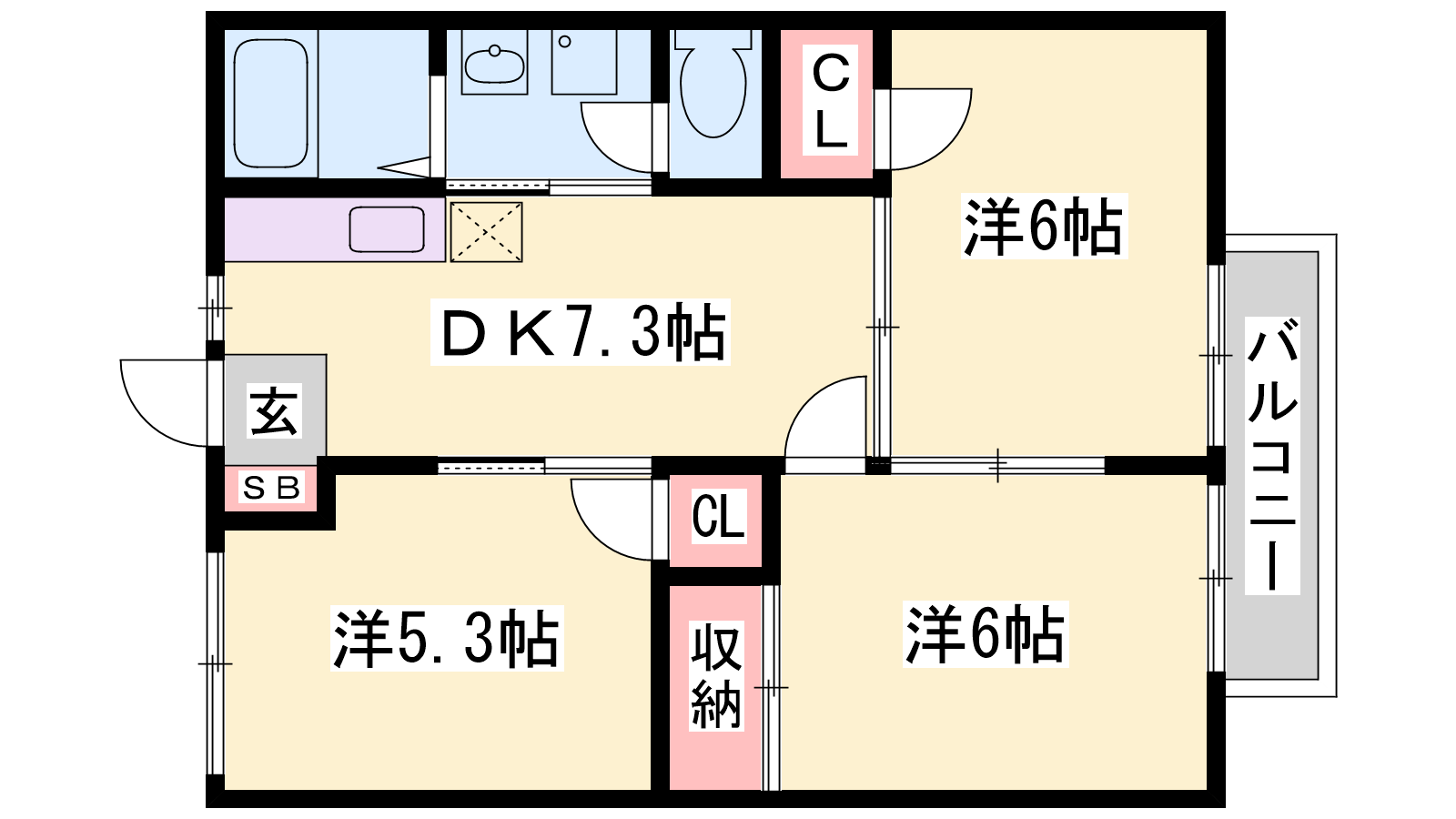 - DK7.3帖、洋室6帖、洋室6帖、洋室5.3帖