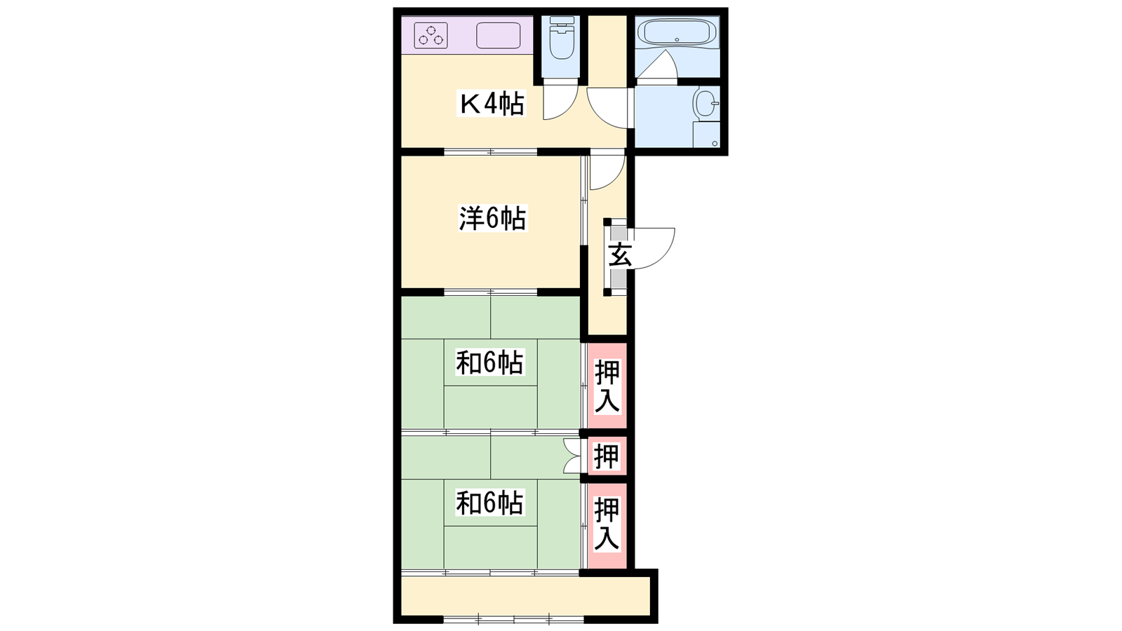 - DK4帖、洋室6帖、和室6帖、和室6帖