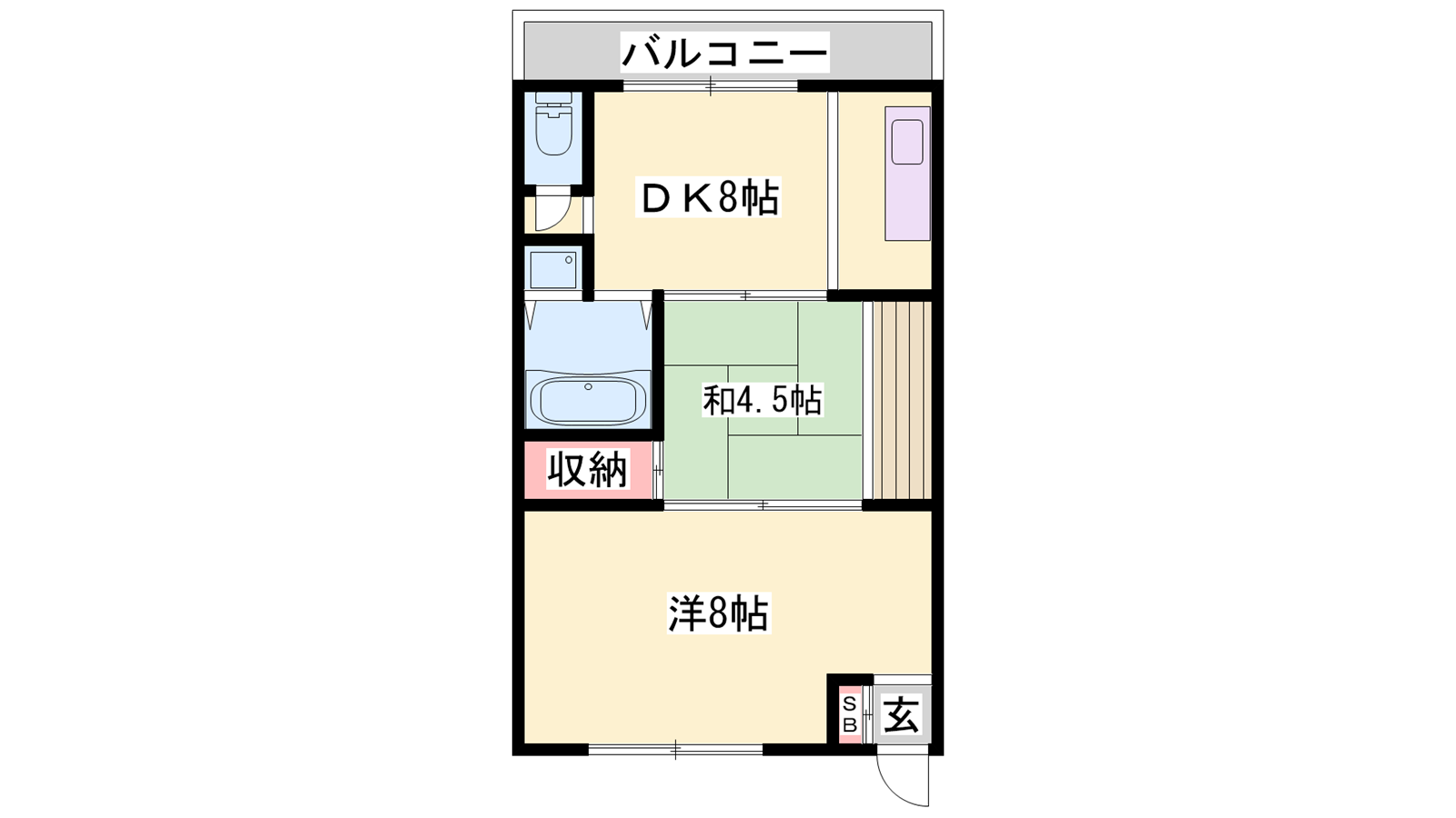 - DK8帖、洋室8帖、和室4.5帖