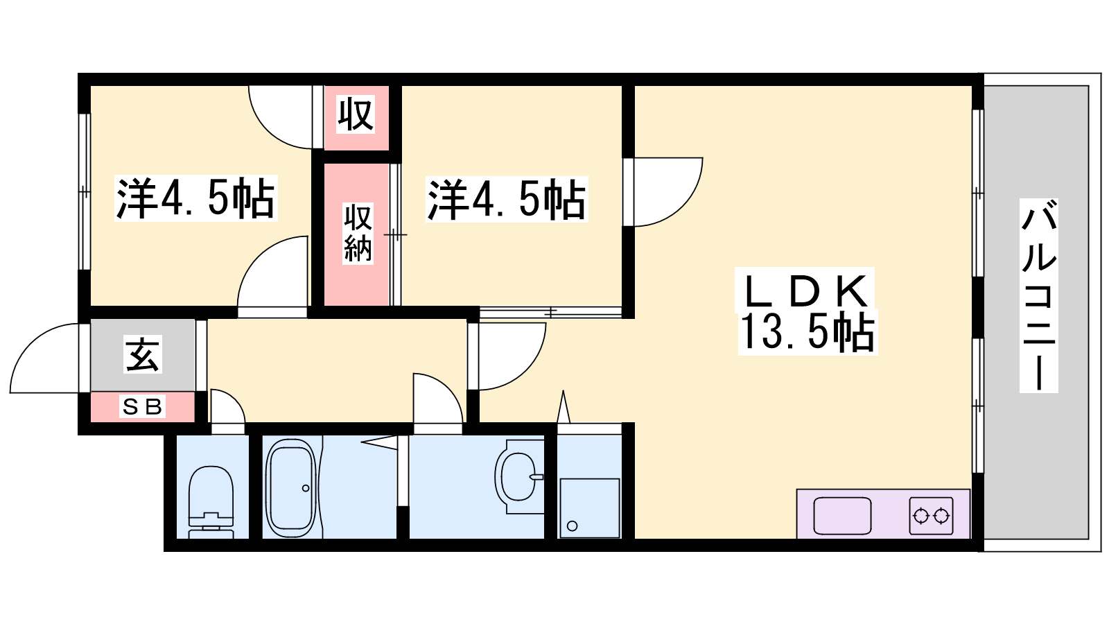 - LDK13.5帖、洋室4.5帖、洋室4.5帖