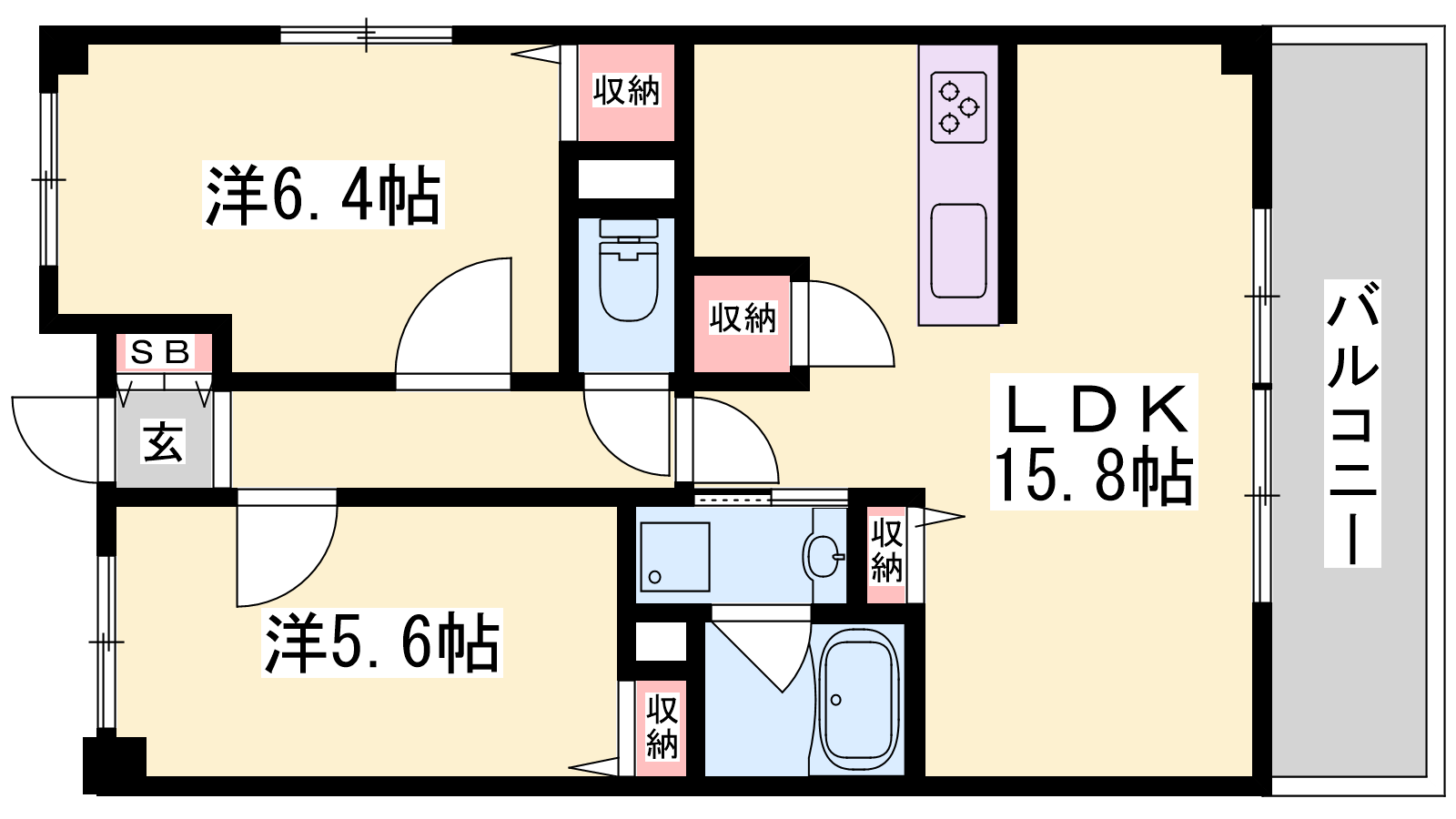 - LDK15.8帖、洋室6.4帖、洋室5.6帖