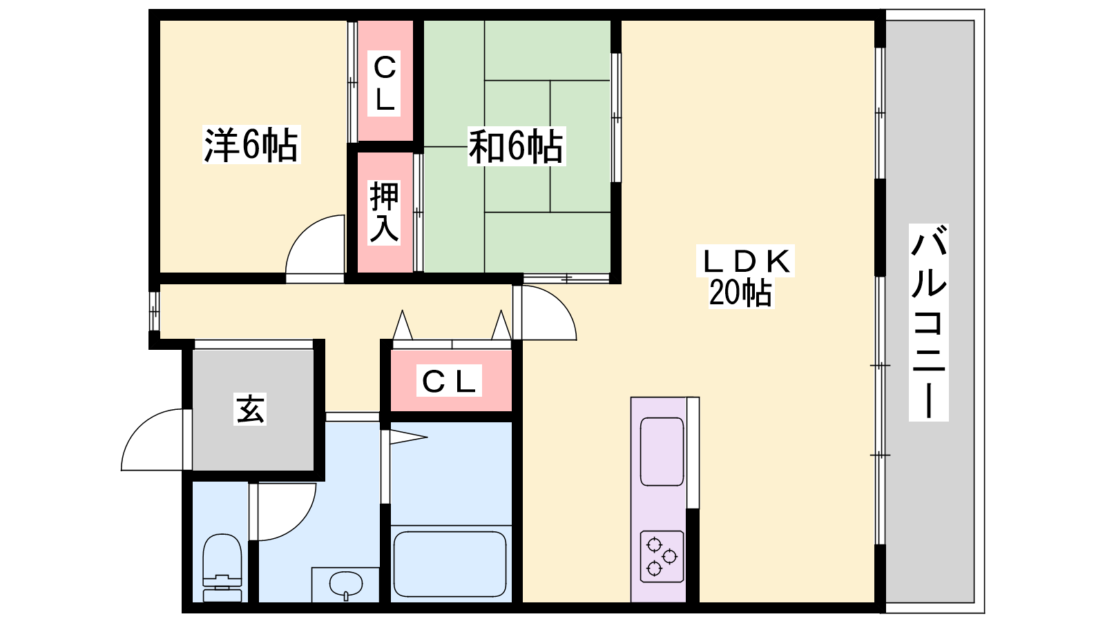 - LDK20帖、洋室6帖、和室6帖