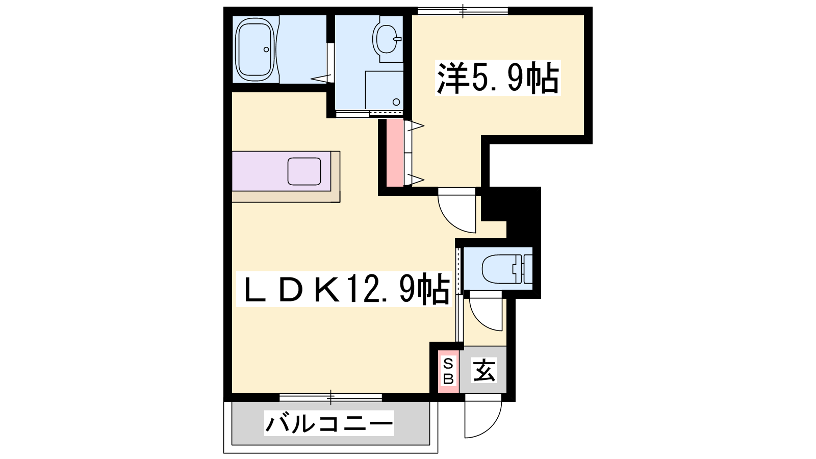 - LDK12.9帖、洋室5.9帖