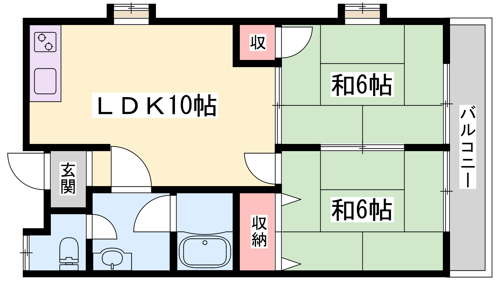 - LDK10帖、和室6帖、和室6帖