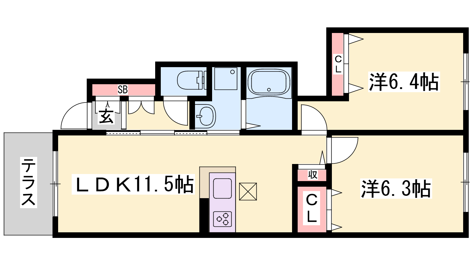 - LDK11.5帖、洋室6.4帖、洋室6.3帖