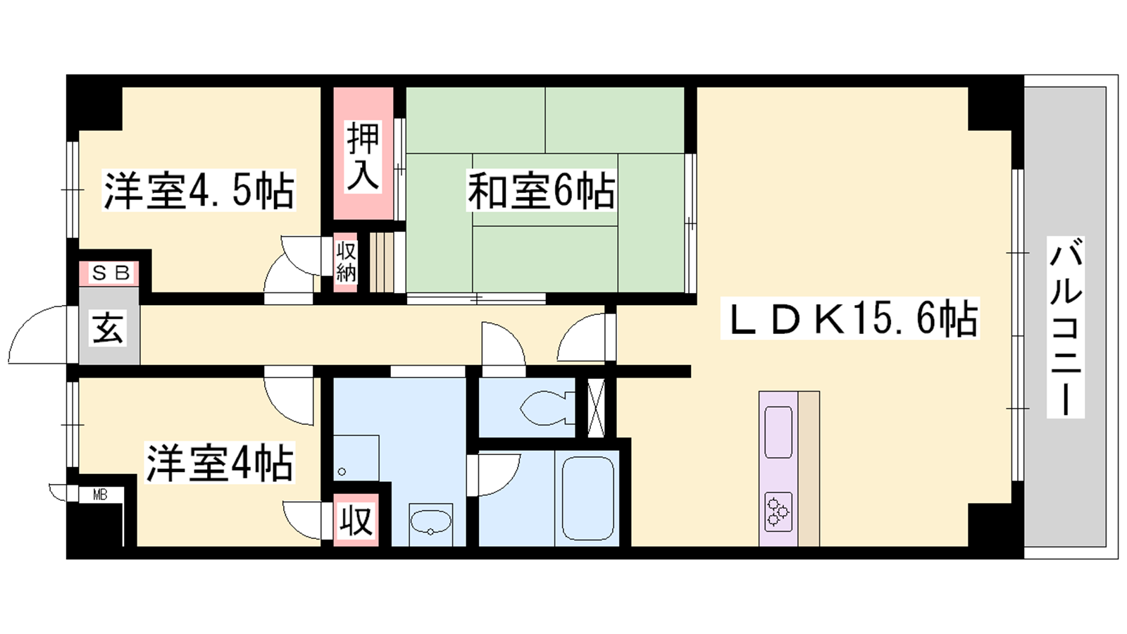 - LDK15.6帖、和室6帖、洋室4.5帖、洋室4帖