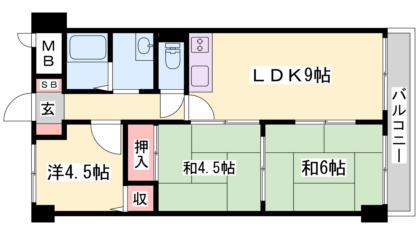 - LDK9帖、和室6帖、洋室4.5帖、和室4.5帖