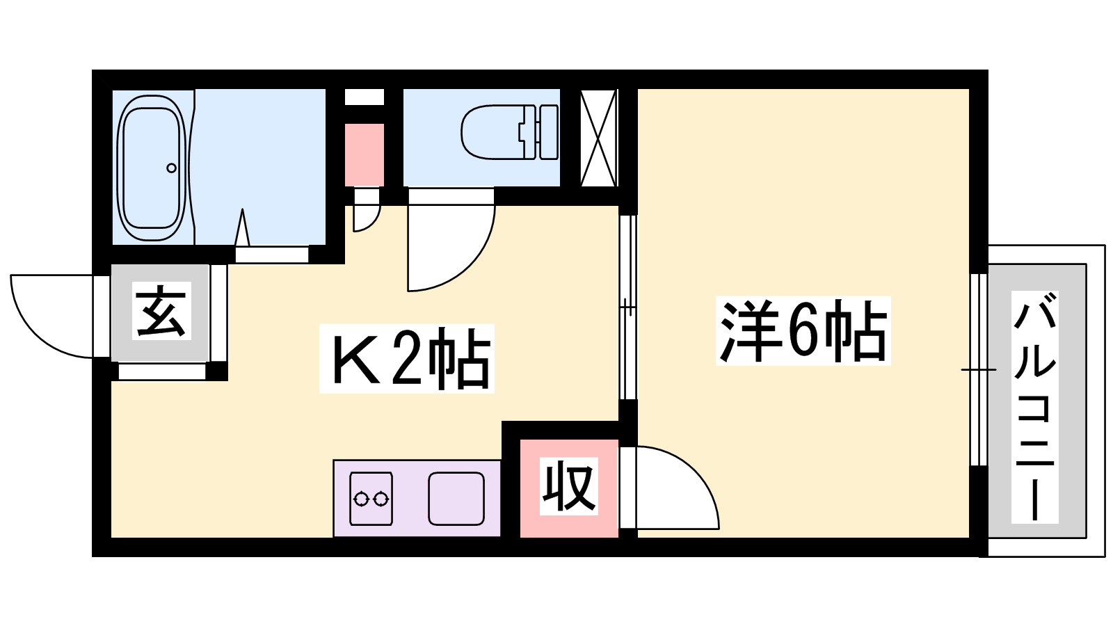 - K2帖、洋室6帖