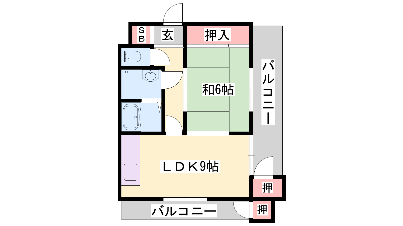 - LDK9帖、和室6帖
