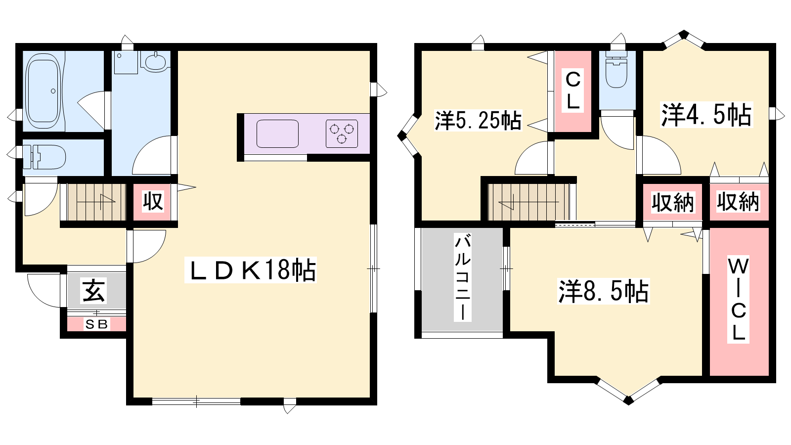 - LDK18帖、洋室8.5帖、洋室5.25帖、洋室4.5帖