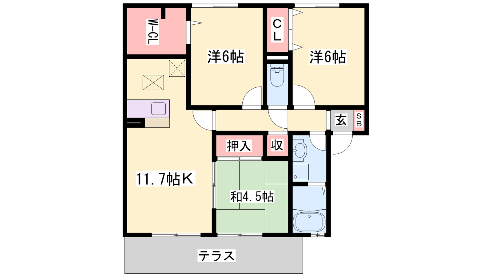 - LDK11.7帖、洋室6帖、洋室6帖、和室4.5帖