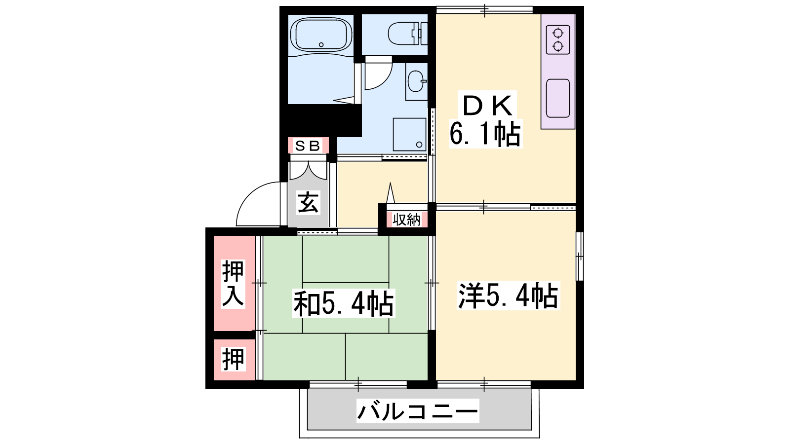 - DK6.1帖、和室5.4帖、洋室5.4帖