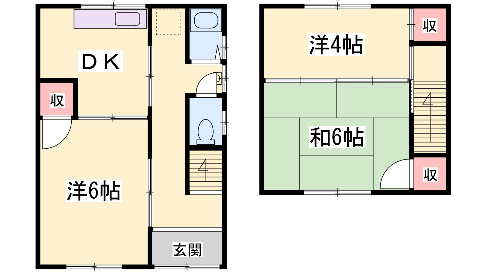 - DK4帖、洋室6帖、洋室4帖、和室6帖
