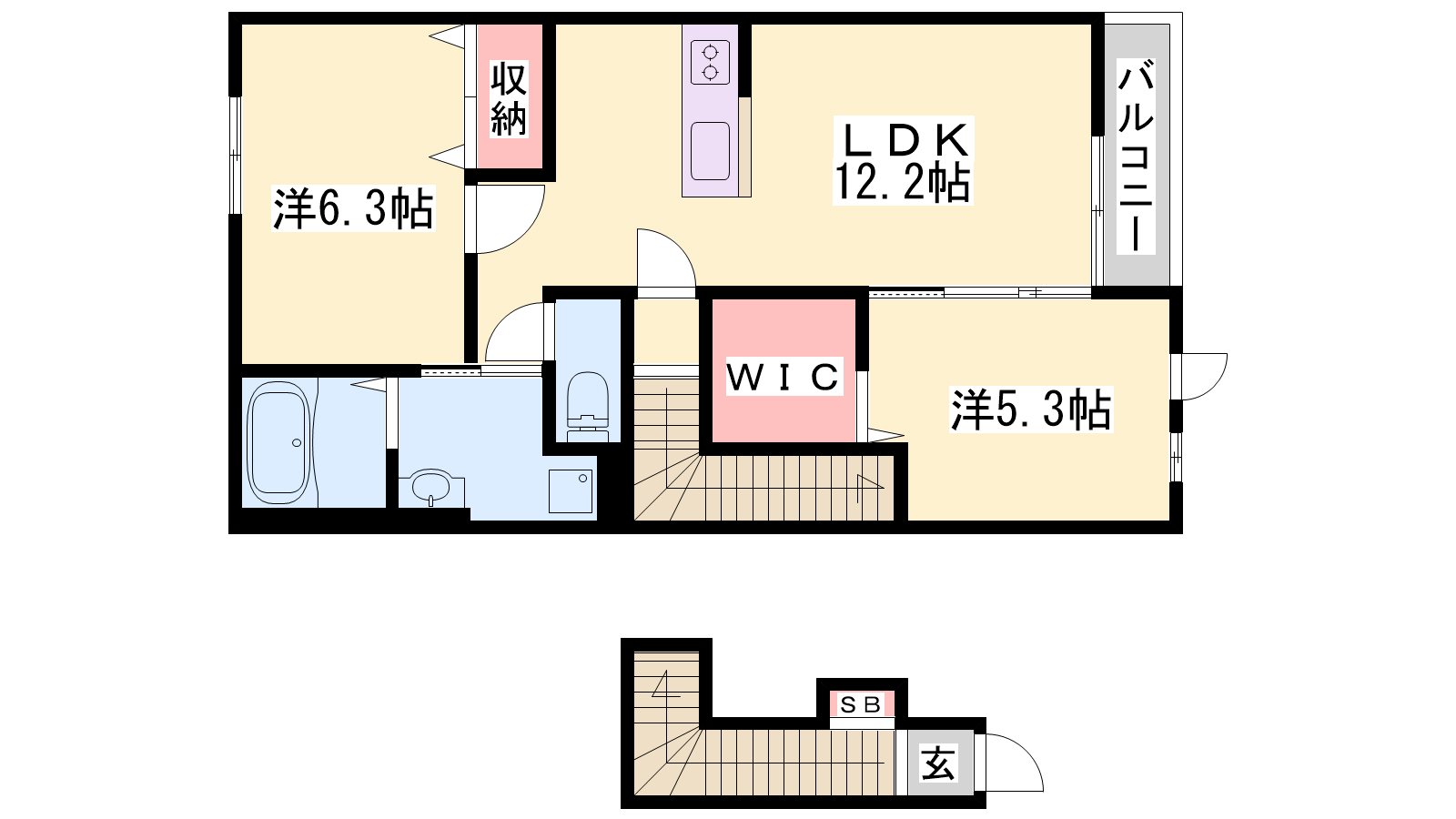 - LDK12.2帖、洋室6.3帖、洋室5.3帖