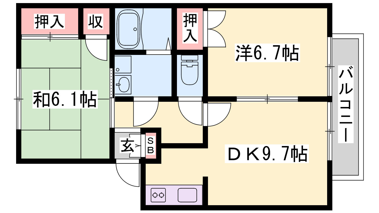 - DK9.7帖、和室6.7帖、和室6.1帖