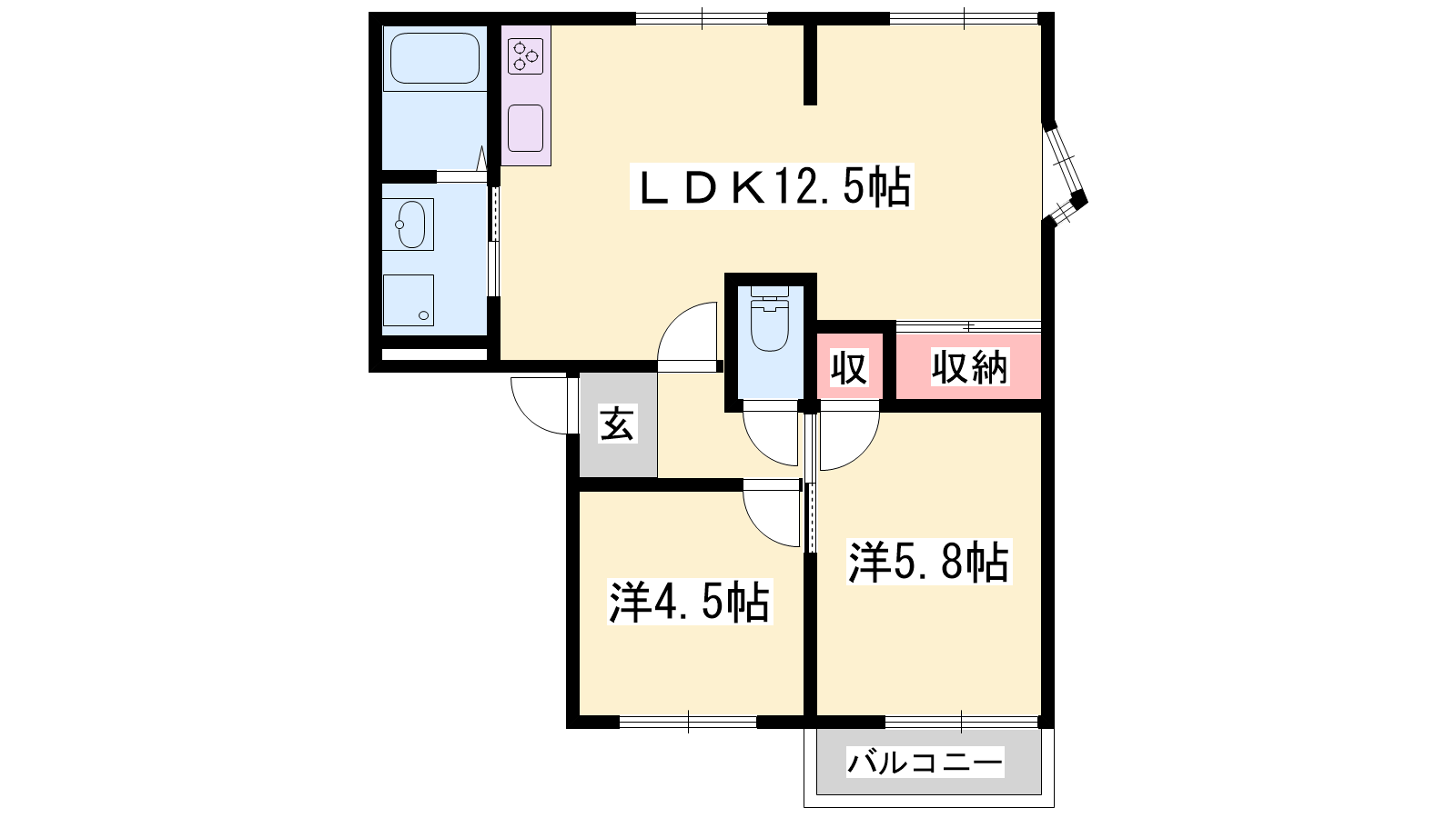 - LDK12.5帖、洋室4.5帖、洋室5.8帖