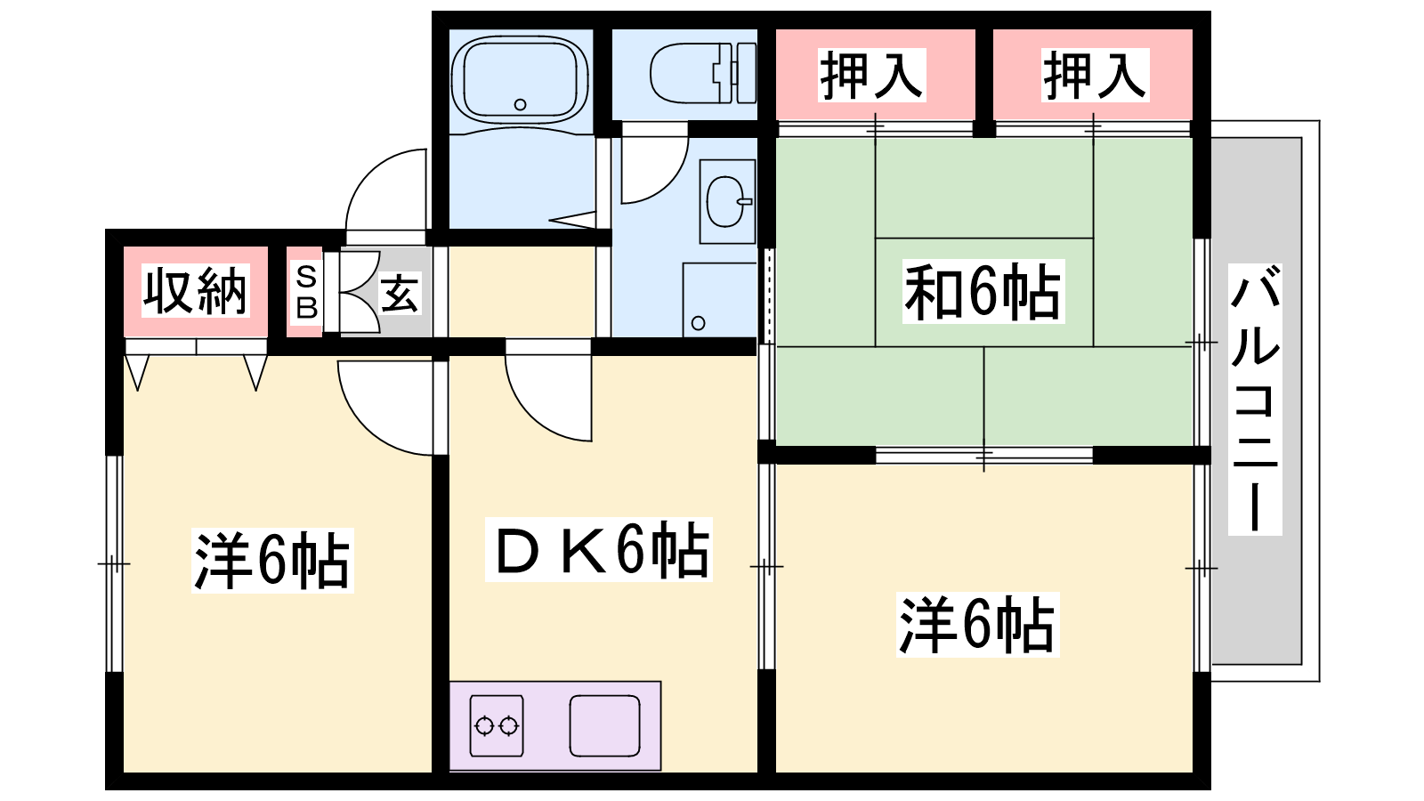 - DK6帖、洋室6帖、洋室6帖、和室6帖