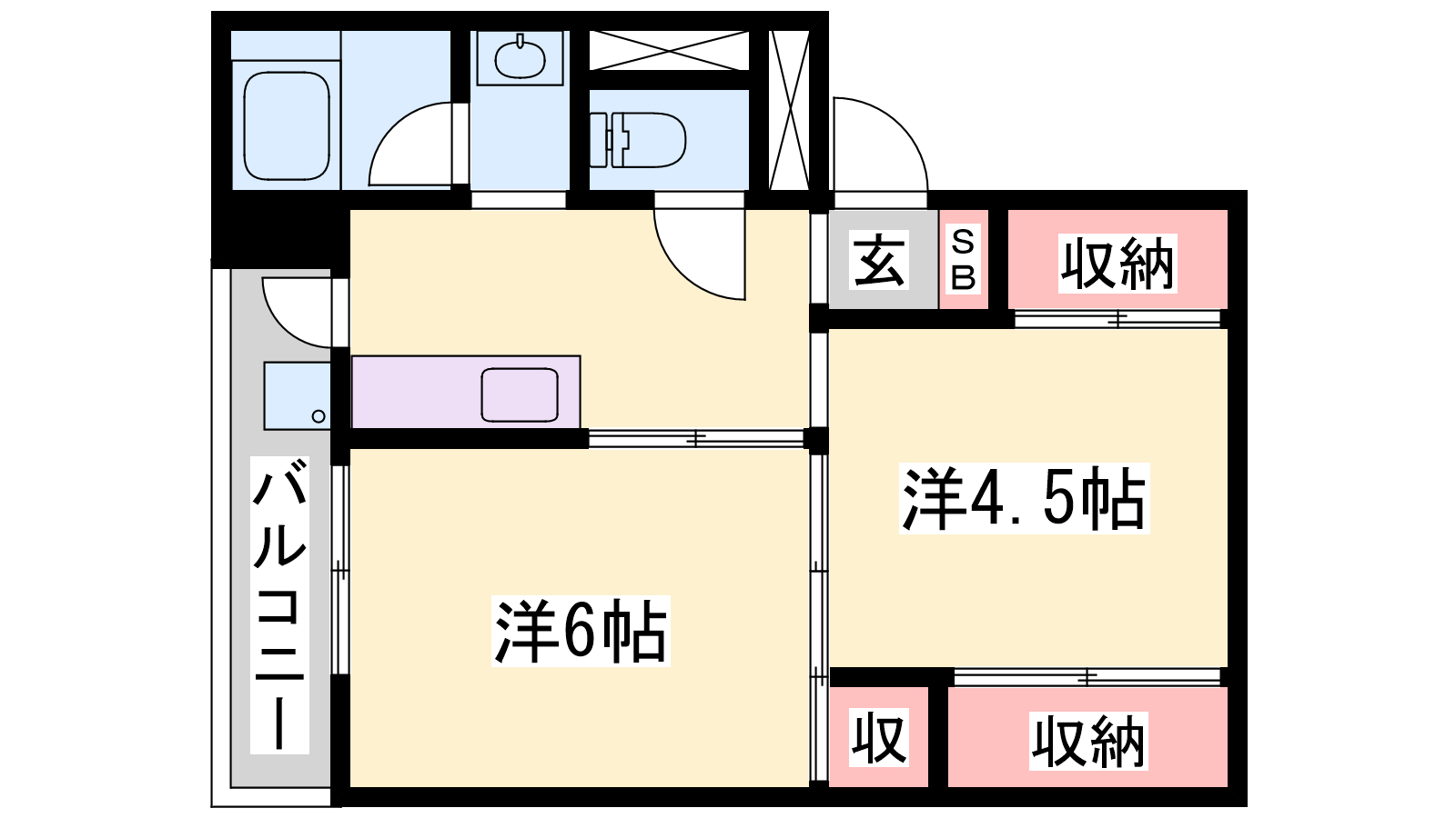 - K4帖、洋室6帖、洋室4.5帖