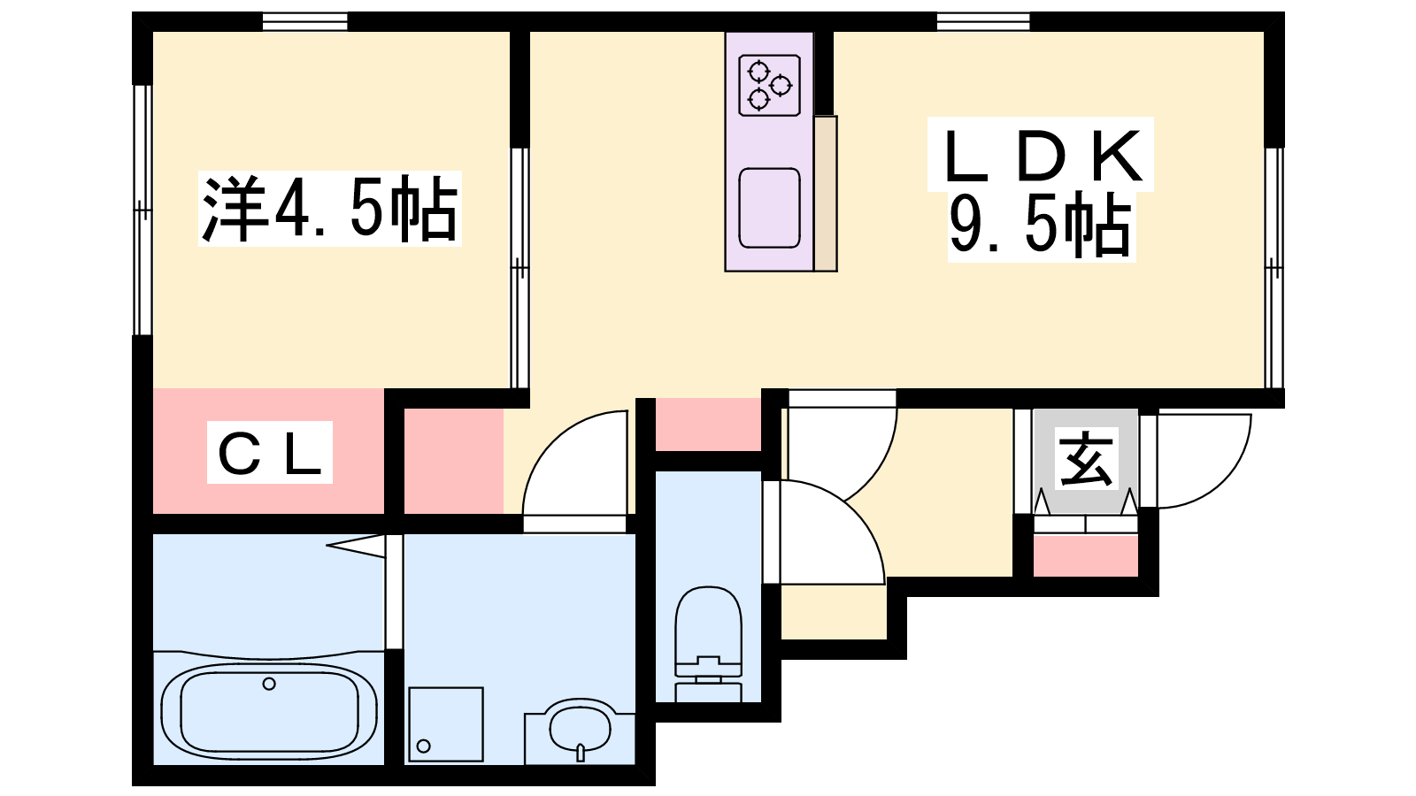 - LDK9.5帖、洋室4.5帖
