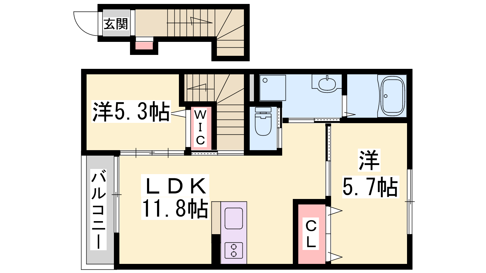 - LDK11.8帖、洋室5.7帖、洋室5.3帖