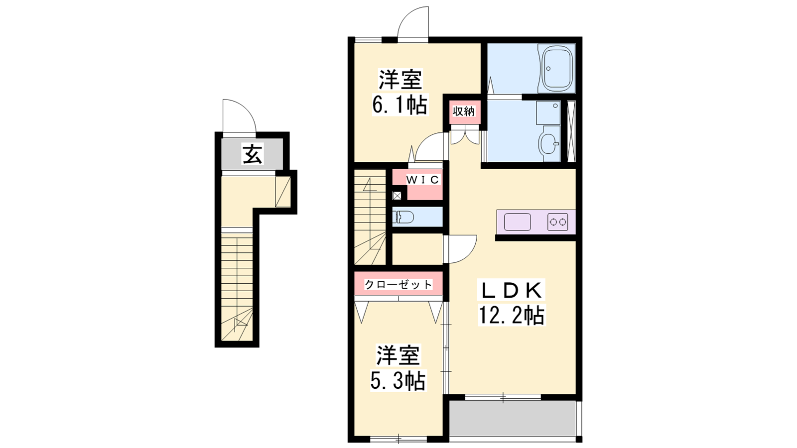 - LDK12.2帖、洋室6.1帖、洋室5.3帖