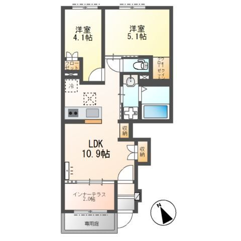 - LDK10.9帖、洋室5.1帖、洋室4.1帖