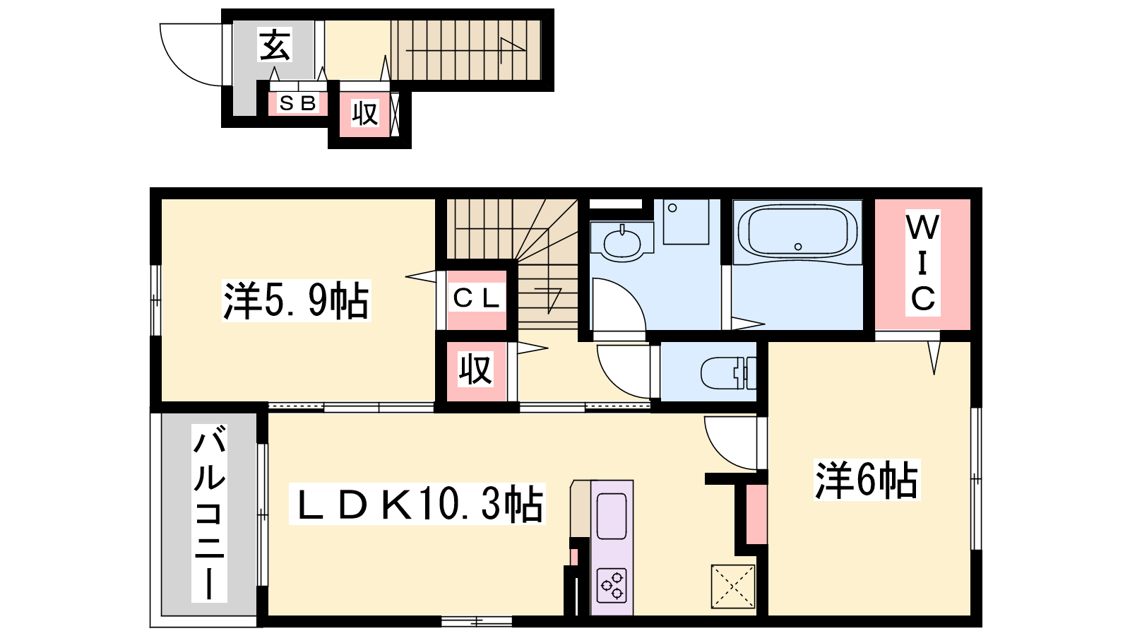 - LDK10.3帖、洋室6帖、洋室5.9帖