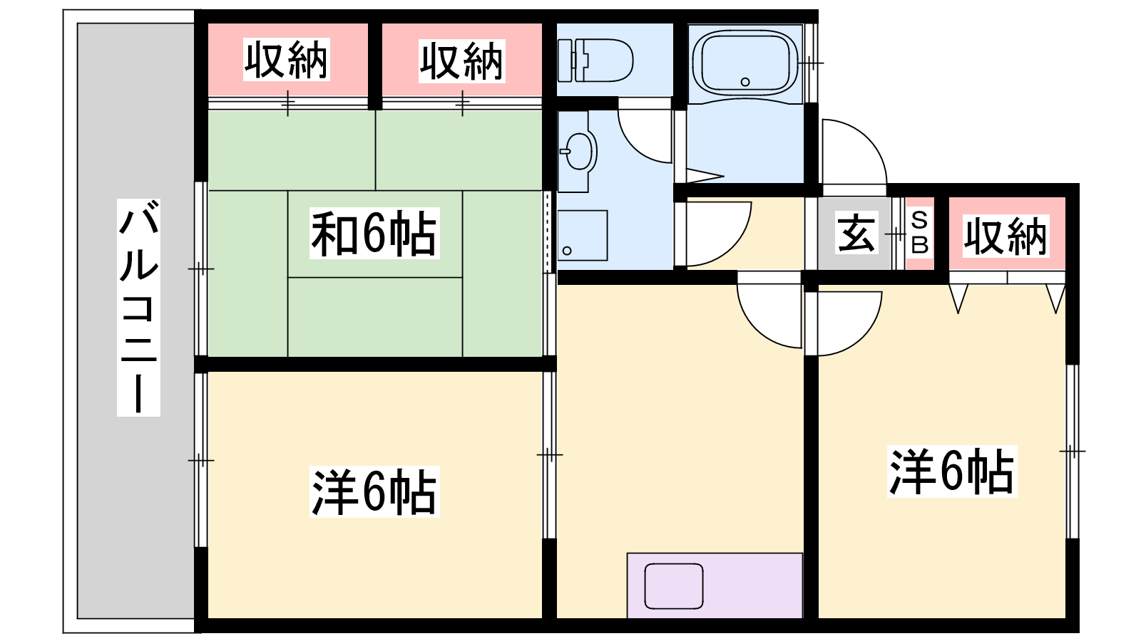 - DK6帖、洋室6帖、洋室6帖、和室6帖