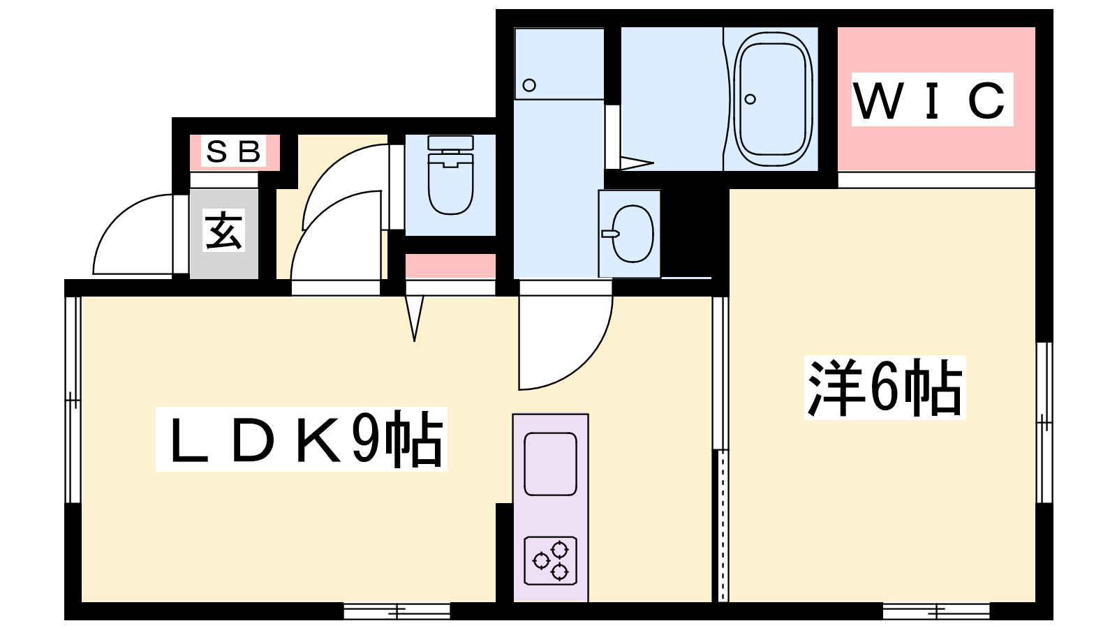 - LDK9帖、洋室6帖