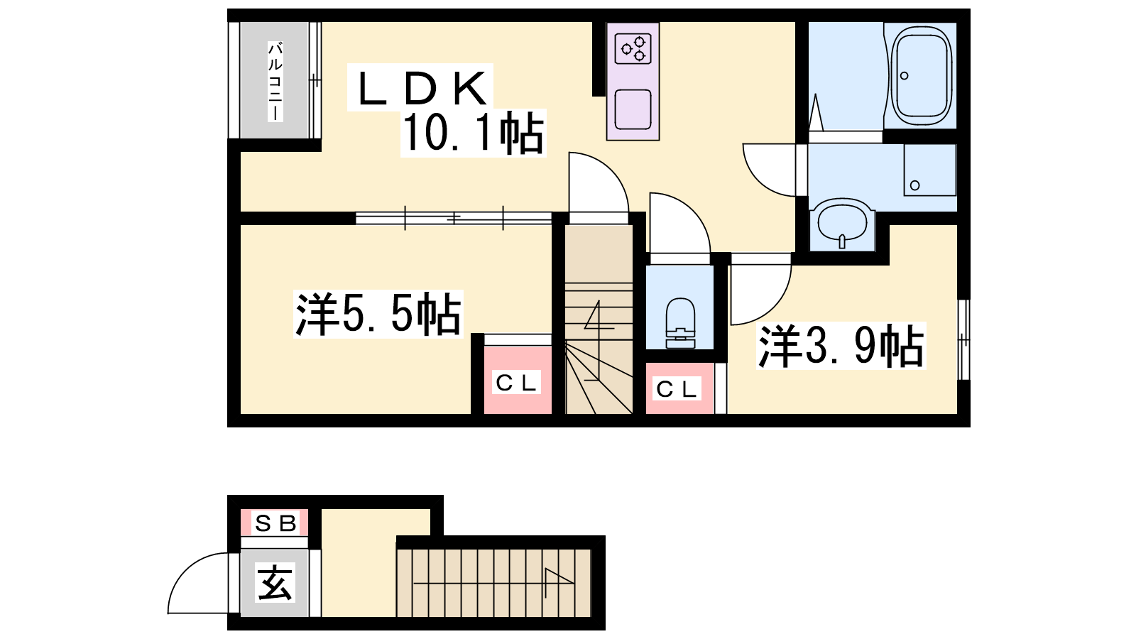 - LDK10.1帖、洋室5.5帖、洋室3.9帖